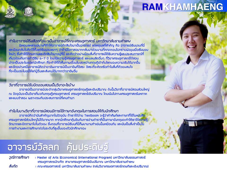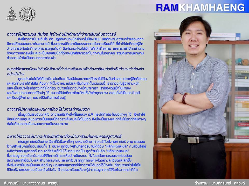 ปริญญาตรี : เศรษฐศาสตรบัณฑิต สาขาเศรษฐศาสตร์เชิงปริมาณ มหาวิทยาลัยรามคำแหง (เกียรตินิยม)